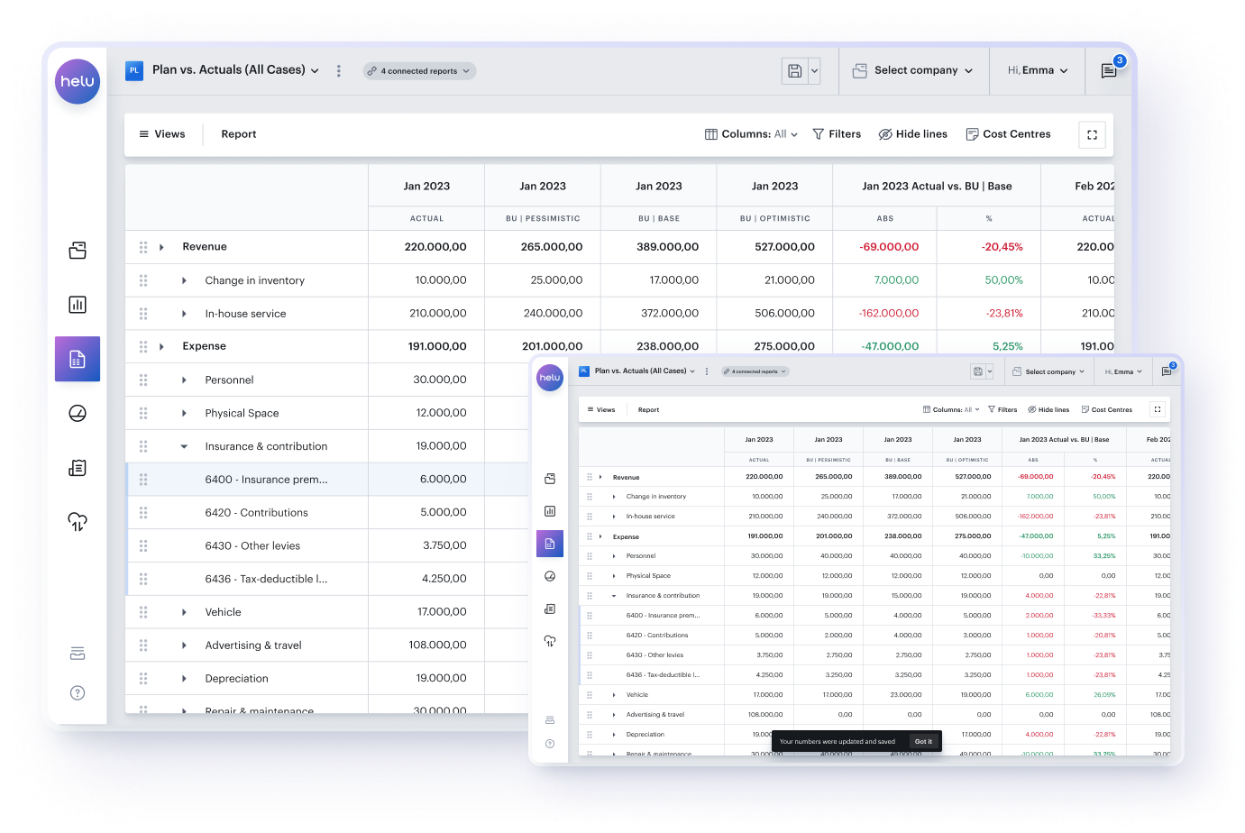 Widgets stay up-to-date by automatically importing data directly from DATEV or other integrations, generating dynamic data for your financial and scenario planning.